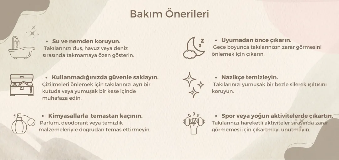 🔸 Uzun ömürlü kullanım için su, parfüm, deodorant ve kimyasal temasından kaçınınız.